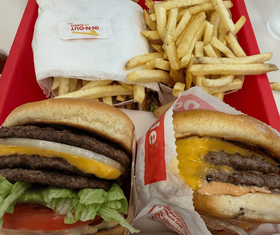 I booked our flight home late afternoon so I could accommodate my normal Monday MLM team call and the podcast appearance with Chip. I knocked out both, Kate went for a long walk, Harper had his morning classes, and then we picked him up for our obligatory lunch at In-N-Out Burger. My order is always a “Triple Single”: three burger patties, one slice of cheese. I pass on the fries.